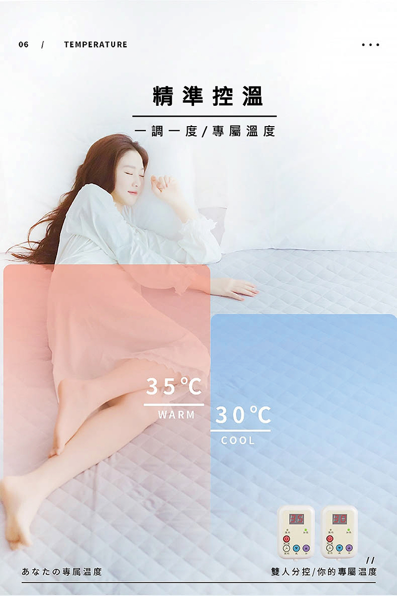 ▸遠紅外線健康暖墊系列產品採用先進設計溫控器調節溫度,